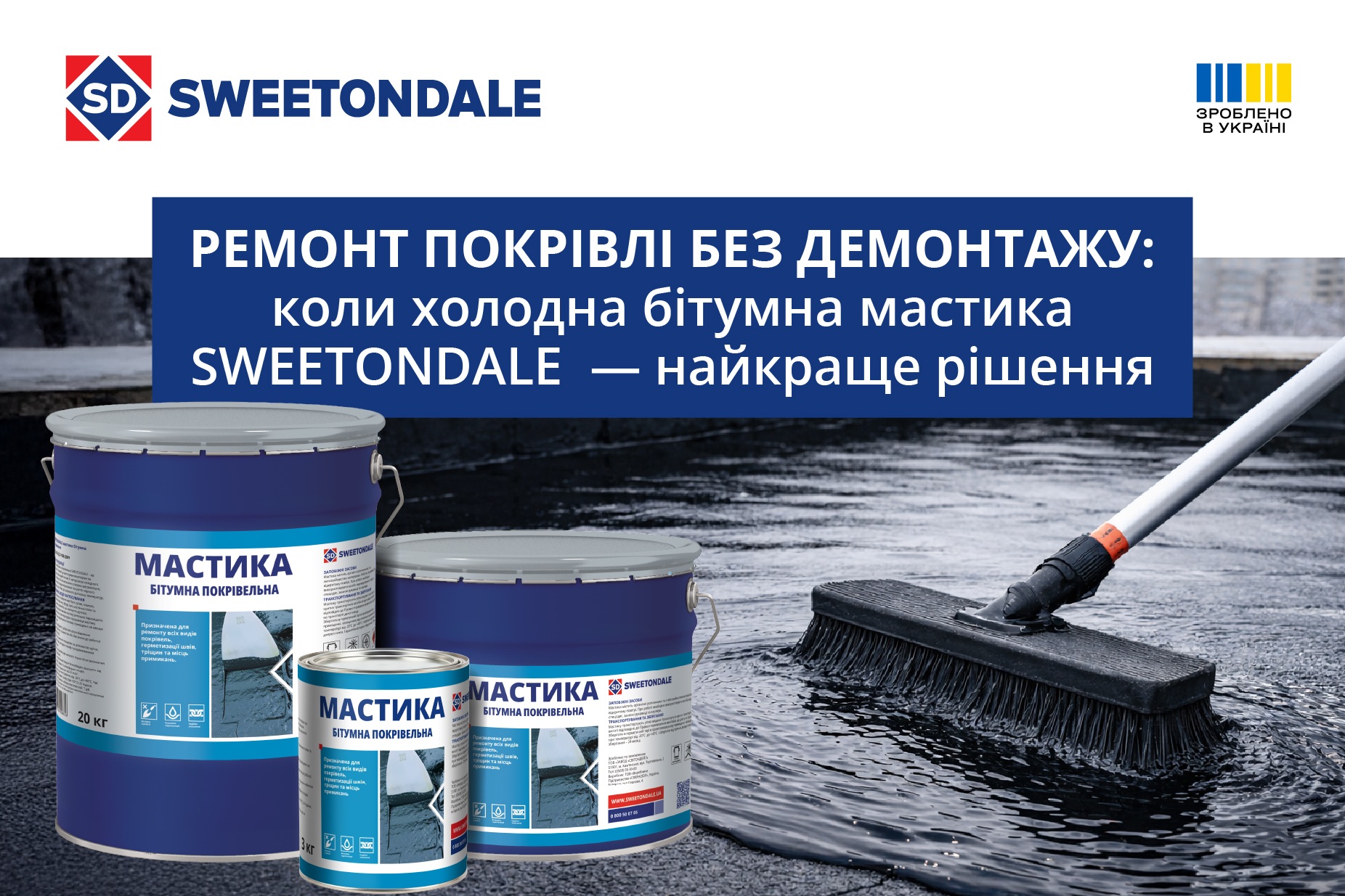 Після складної зими плоскі покрівлі масово потребують ремонту. Холодна бітумна мастика SWEETONDALE дозволяє оперативно усувати локальні пошкодження без демонтажу покриття